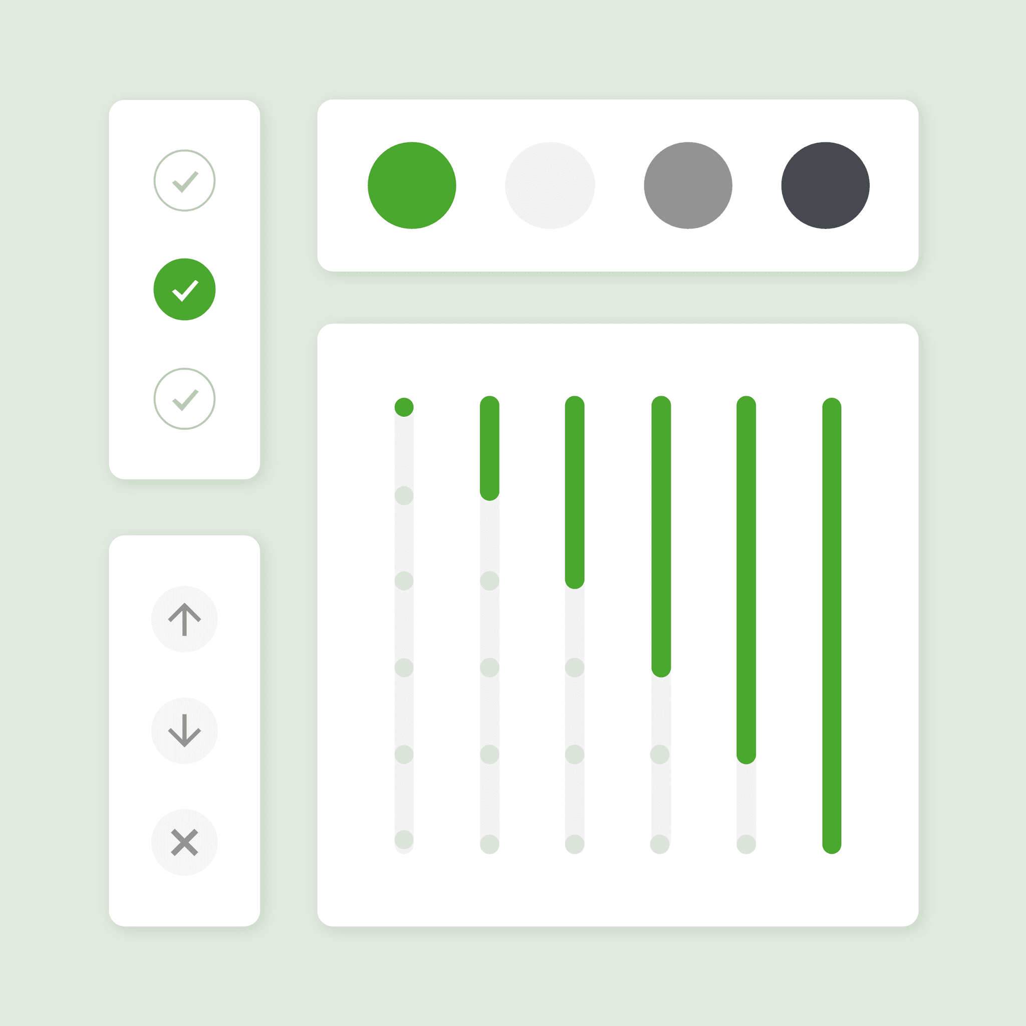 Calm colours and icons to guide progress without noise